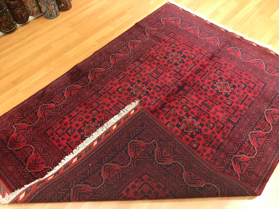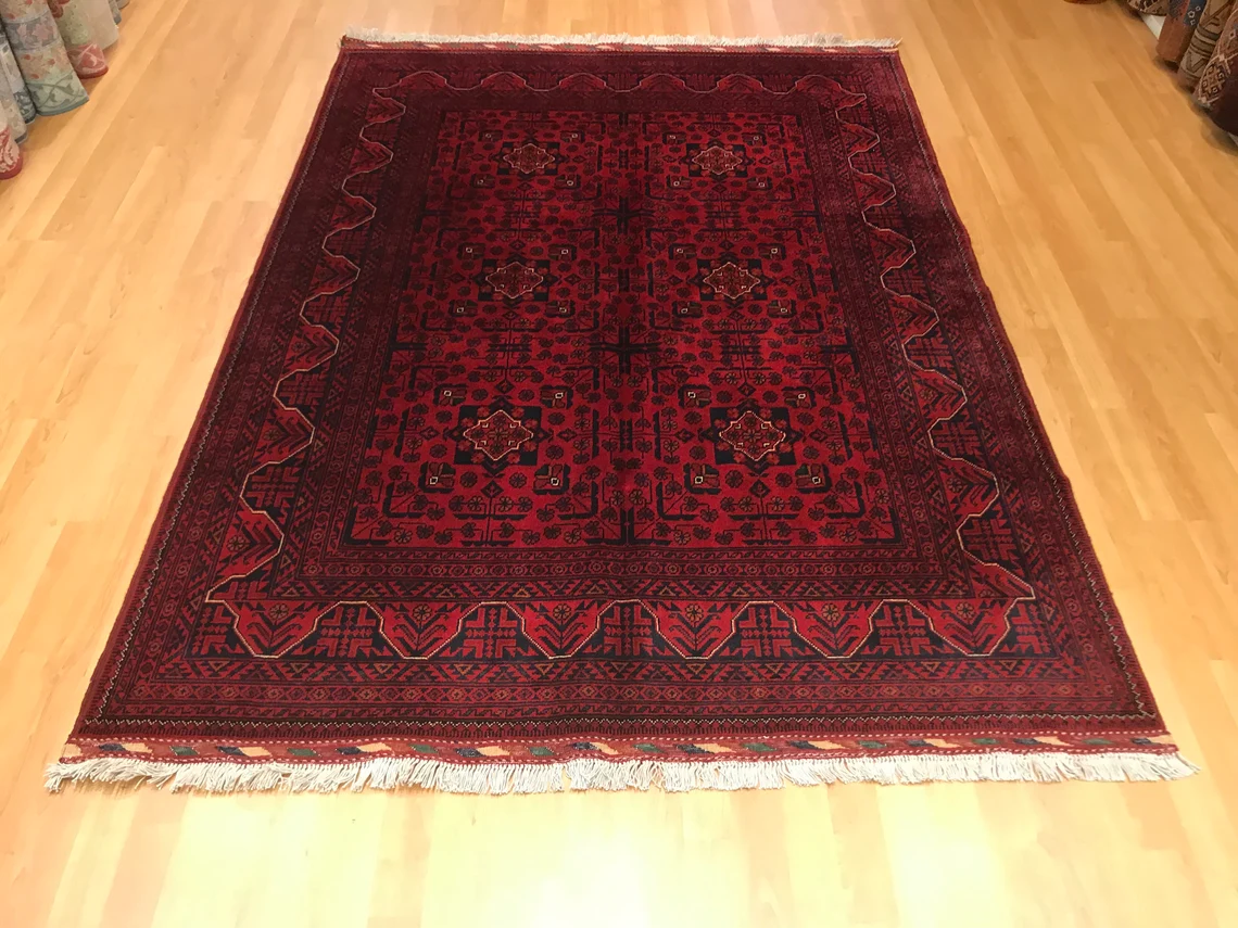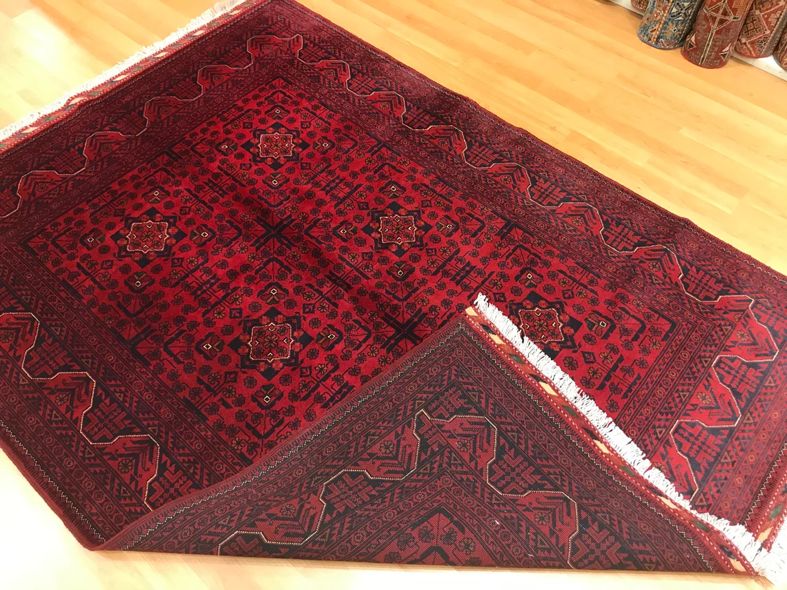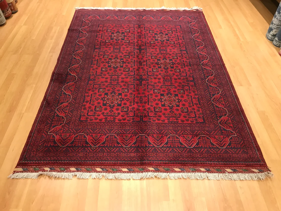 Our beatiful handmade carpet is made by wool on cotton. It is 6'7'' by 4'10'' ( 202 cm x 149 cm ) . It is double-knott and 20 years old . It is usable with shoes .It is professionally cleaned, washed and ready to use.