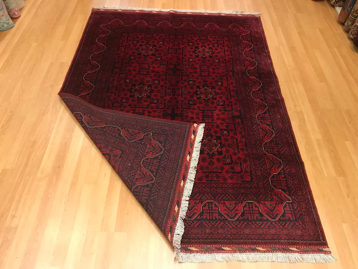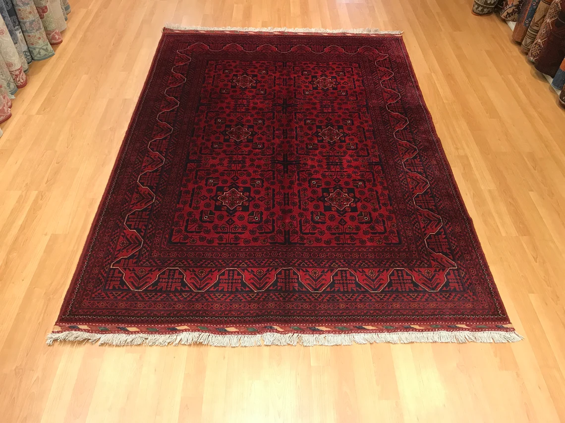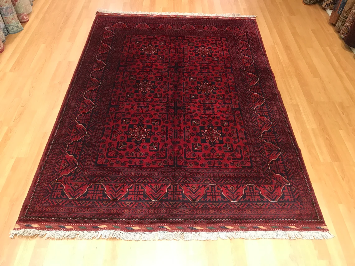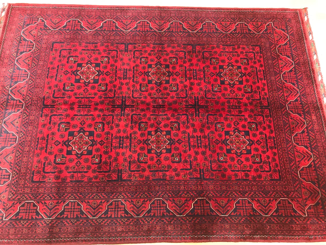 Our beatiful handmade carpet is made by wool on cotton. It is 6'7'' by 4'10'' ( 202 cm x 149 cm ) . It is double-knott and 20 years old . It is usable with shoes .It is professionally cleaned, washed and ready to use.